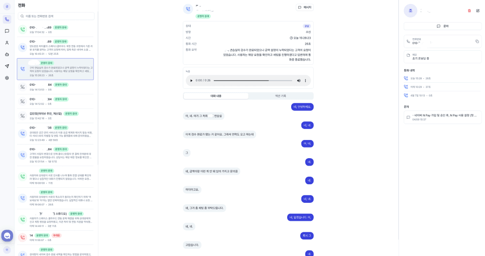 ✔️ 이전 통화 / 문자 / 응대 내용 확인